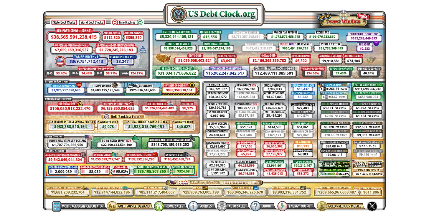 All of this comes into sharp, and perhaps ironic, focus when you consider the US debt situation, which now sits at $38.5 trillion. It took a military operation costing many times a $50 million bounty to prove that nothing is too expensive when we get to defer the reckoning to the future.