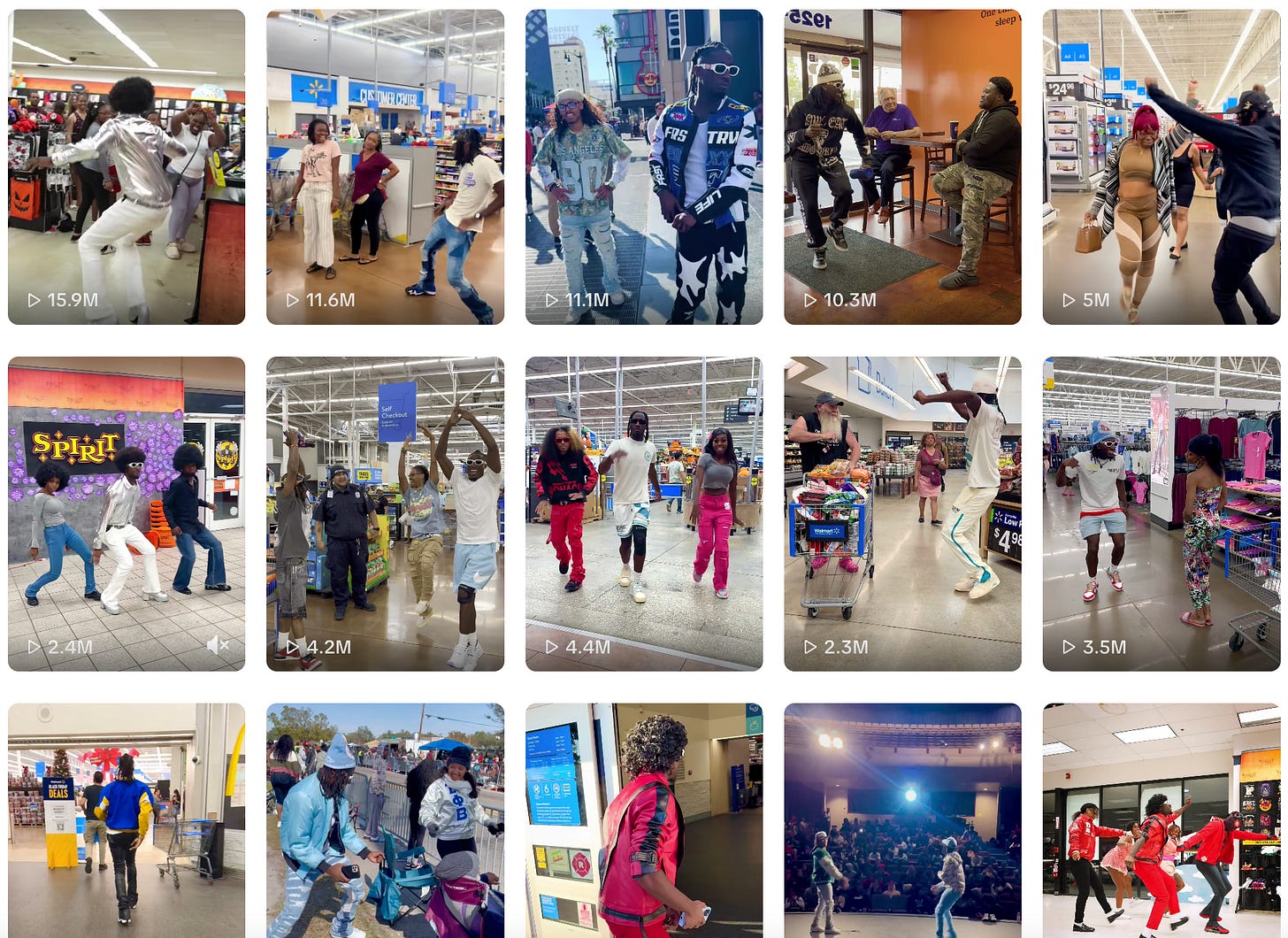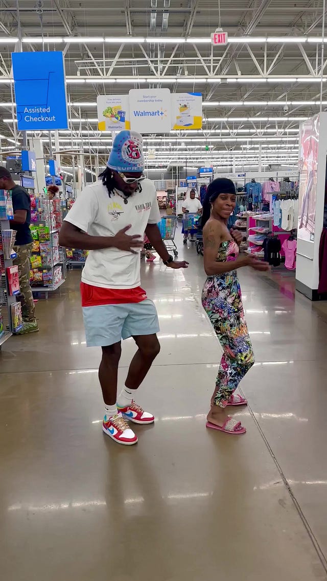 Random shoppers of all ages and backgrounds drop everything to join in, with big smiles and “Walmart vibes” everywhere. In one video, reminiscent of a 1980s televangelist schtick, one guy gets up from his mobility scooter to join in the dancing! The videos are blowing up on TikTok and Instagram, with some nearing 12 million views at last check.