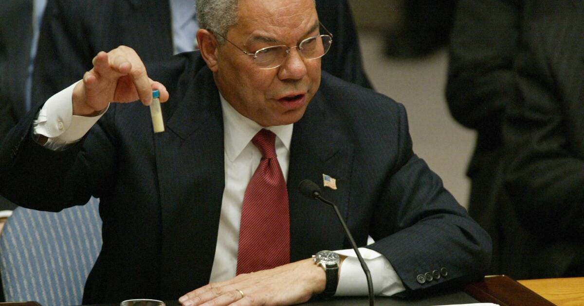 Think back to February 2003, when Secretary of State Colin Powell addressed the United Nations Security Council, holding up a small vial of yellow liquid as purported evidence that Saddam Hussein possessed weapons of mass destruction. The chamber was heavy with ritual — translators in their booths, diplomats in dark suits, reporters hanging on every word — and the full display of international law’s sombre cadence. All the theatrics alluded to due process among the nations of the world, yet when the claims unraveled and no stockpiles were found, the invasion not only proceeded, accountability was wholly absent.